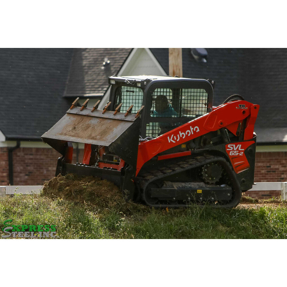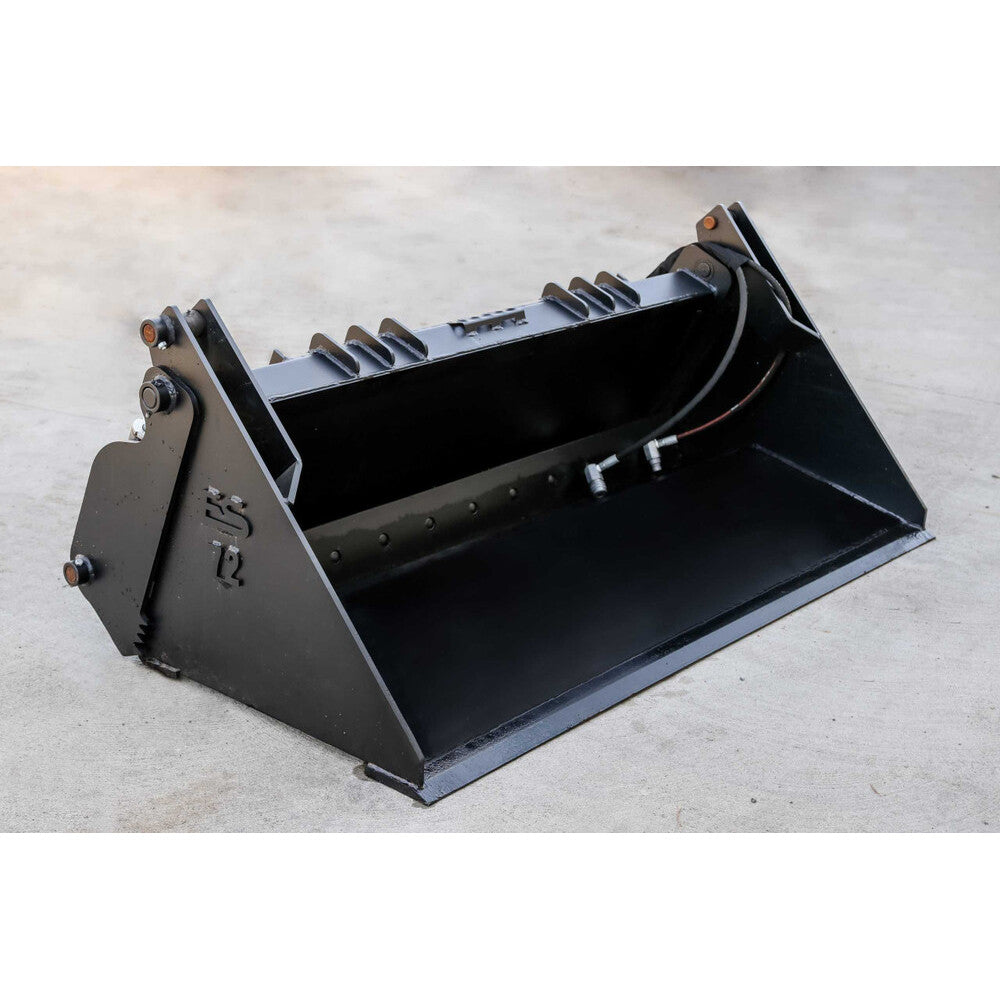 This super-heavy-duty 4-in-1 bucket is the ultimate multi-purpose attachment, functioning as a standard bucket, dozer blade, grapple, and leveler. Serrated grapple edges provide excellent grip for handling brush and debris, while the bucket and dozer edges are easily replaceable for extended durability. Combining the capabilities of multiple tools, this attachment will save you both time and money. Comes eqipped with hoses, fittings, and quick-connect couplers, ready for immediate use.