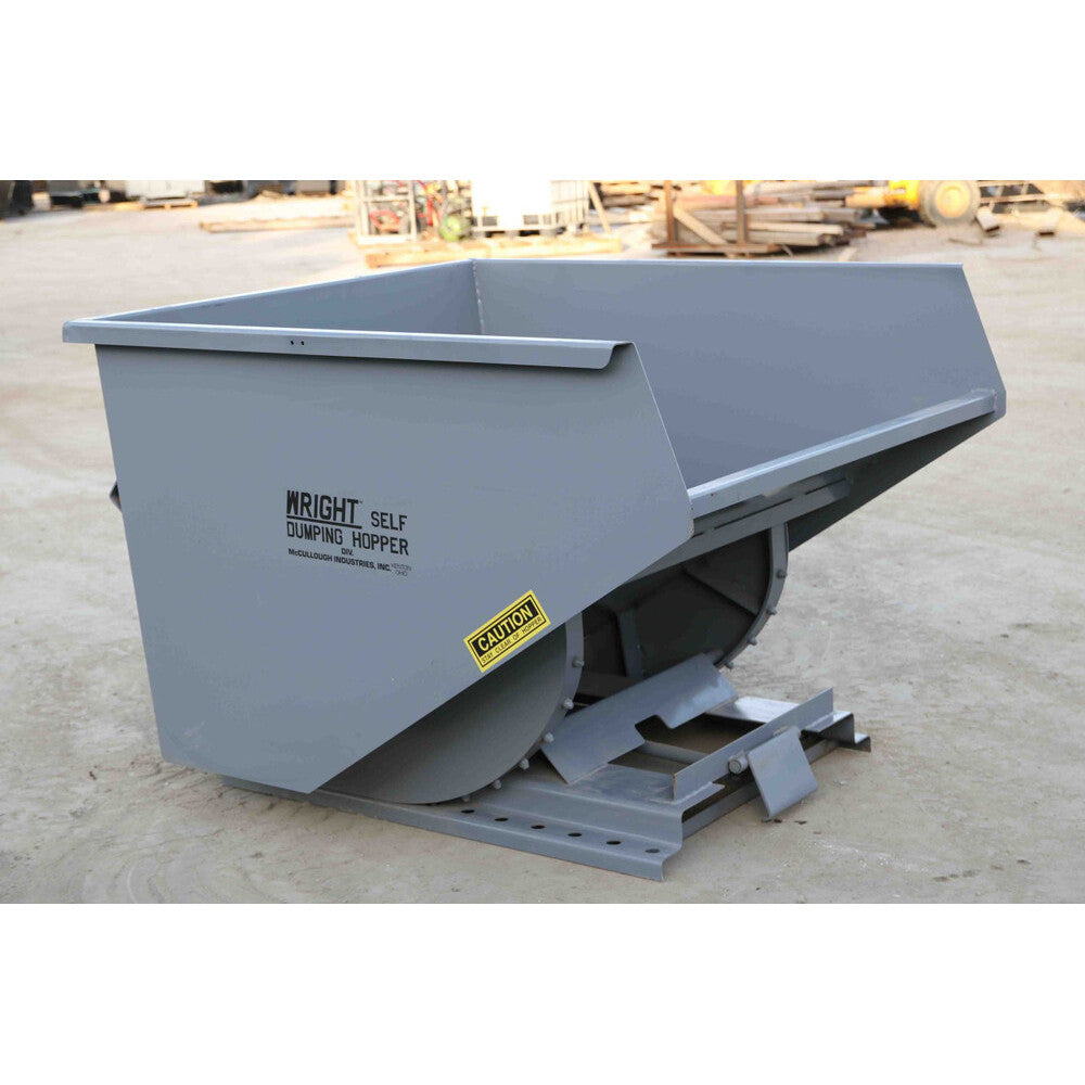 Bump release hoppers feature a steel plate on the front, designed to automatically dump their contents upon contact with the container. Wright Hoppers are made in the U.S. using American steel, ensuring exceptional quality and safety. With a perfected design that prioritizes durability and functionality, these hoppers are built to last while being safe and user-friendly. Their versatility makes them useful for a wide range of purposes, with various models available to meet your specific needs. From small tasks to large-scale projects, Wright Hoppers are built to handle it all. They simplify the process of loading, transporting, and unloading bulky materials and waste, saving you time, effort, and labor. The 3" fork slots accommodate most forklifts and pallet forks.