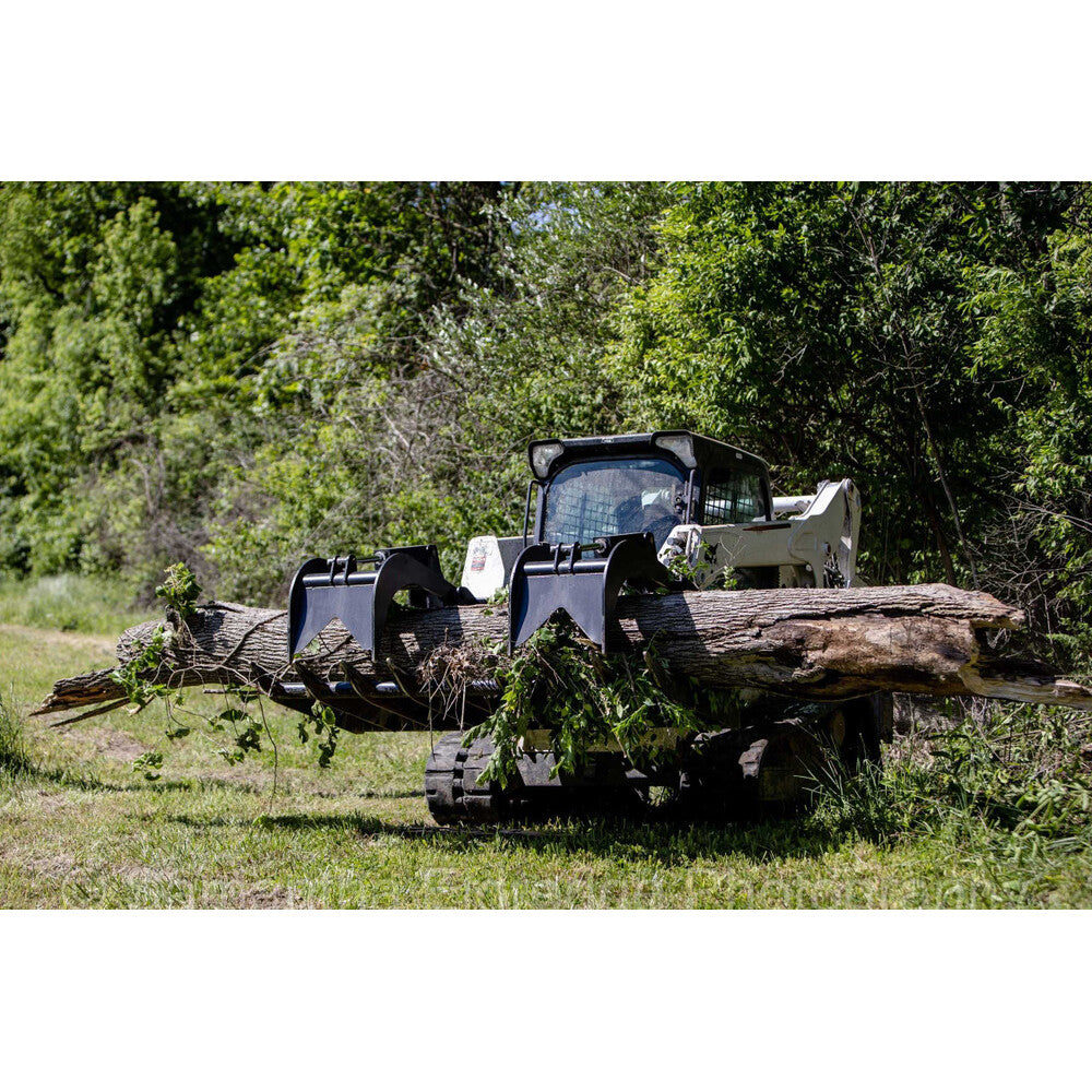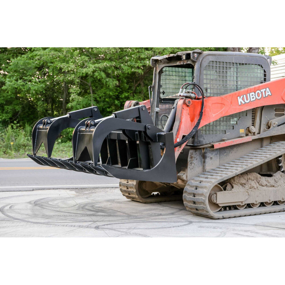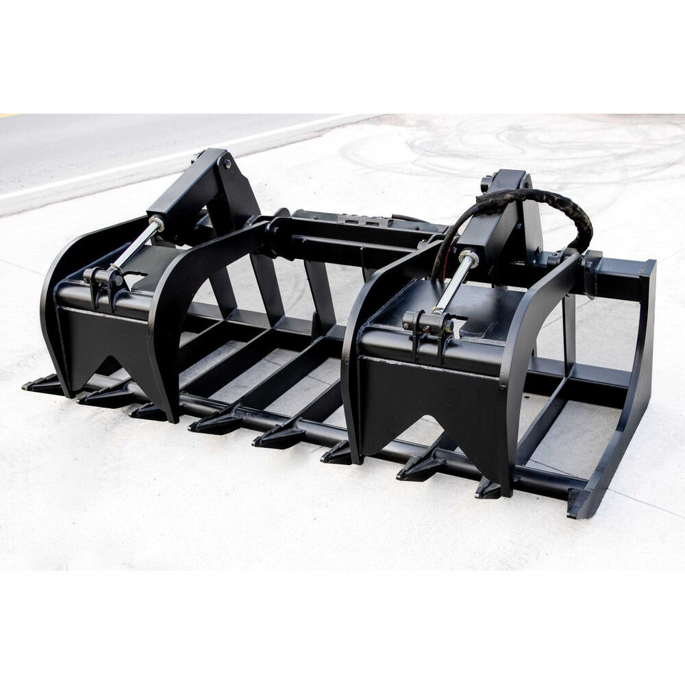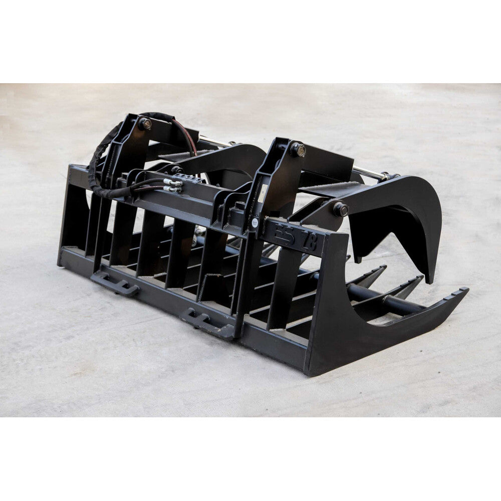This heavy duty grapple is the ideal attachment for tackling your toughest jobs, including lifting and transporting heavy materials, such as brush, logs, stumps, roots, rocks, and more. This multi-purpose grapple is designed for effective and efficient land clearing, brush removal, and jobsite clean-up, effortlessly handling everything from large-scale landscaping projects to industrial-level material handling. Equipped with Parker hoses, 1/2" flat faced fittings and couplers that will hook up to almost any skid steer hydraulic system.