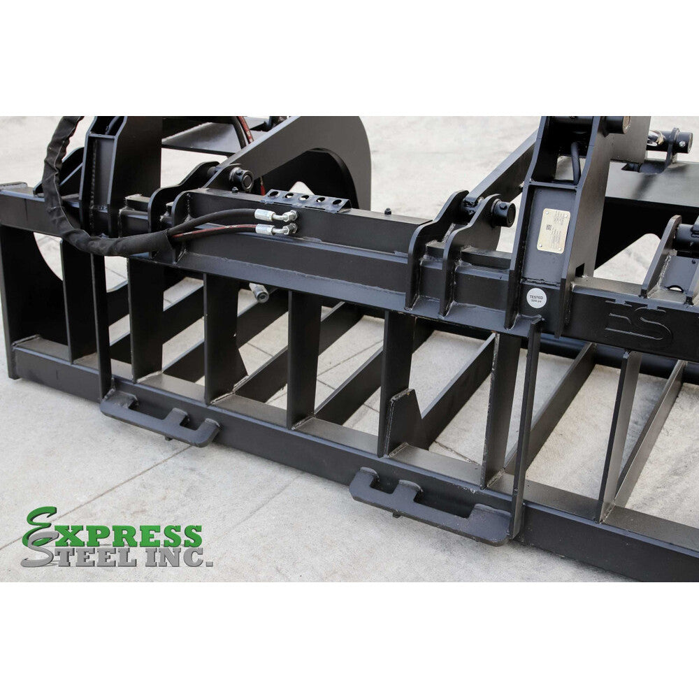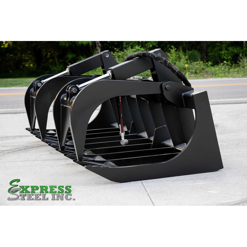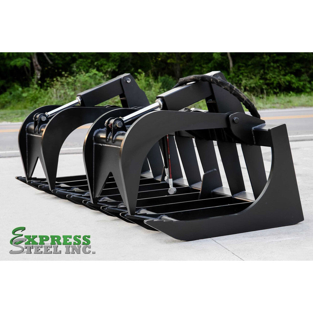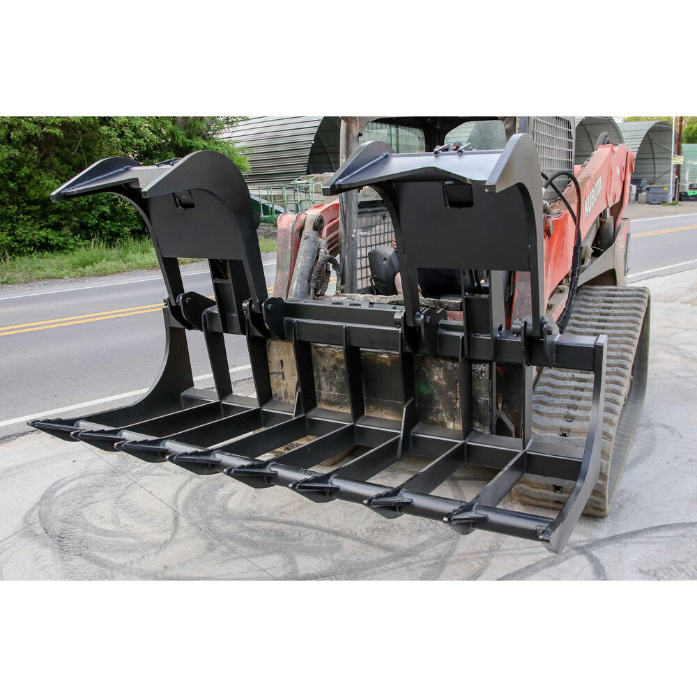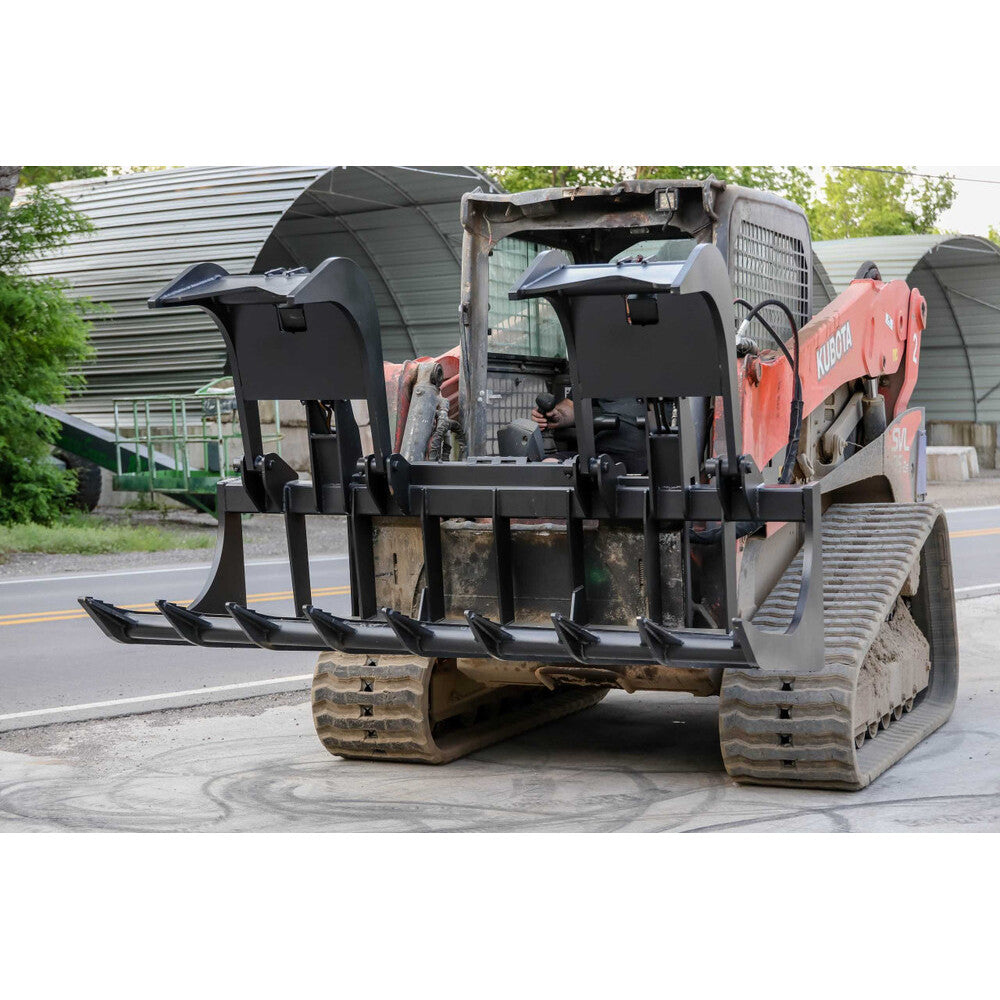 This heavy duty grapple is the ideal attachment for tackling your toughest jobs, including lifting and transporting heavy materials, such as brush, logs, stumps, roots, rocks, and more. This multi-purpose grapple is designed for effective and efficient land clearing, brush removal, and jobsite clean-up, effortlessly handling everything from large-scale landscaping projects to industrial-level material handling. Equipped with Parker hoses, 1/2" flat faced fittings and couplers that will hook up to almost any skid steer hydraulic system.
