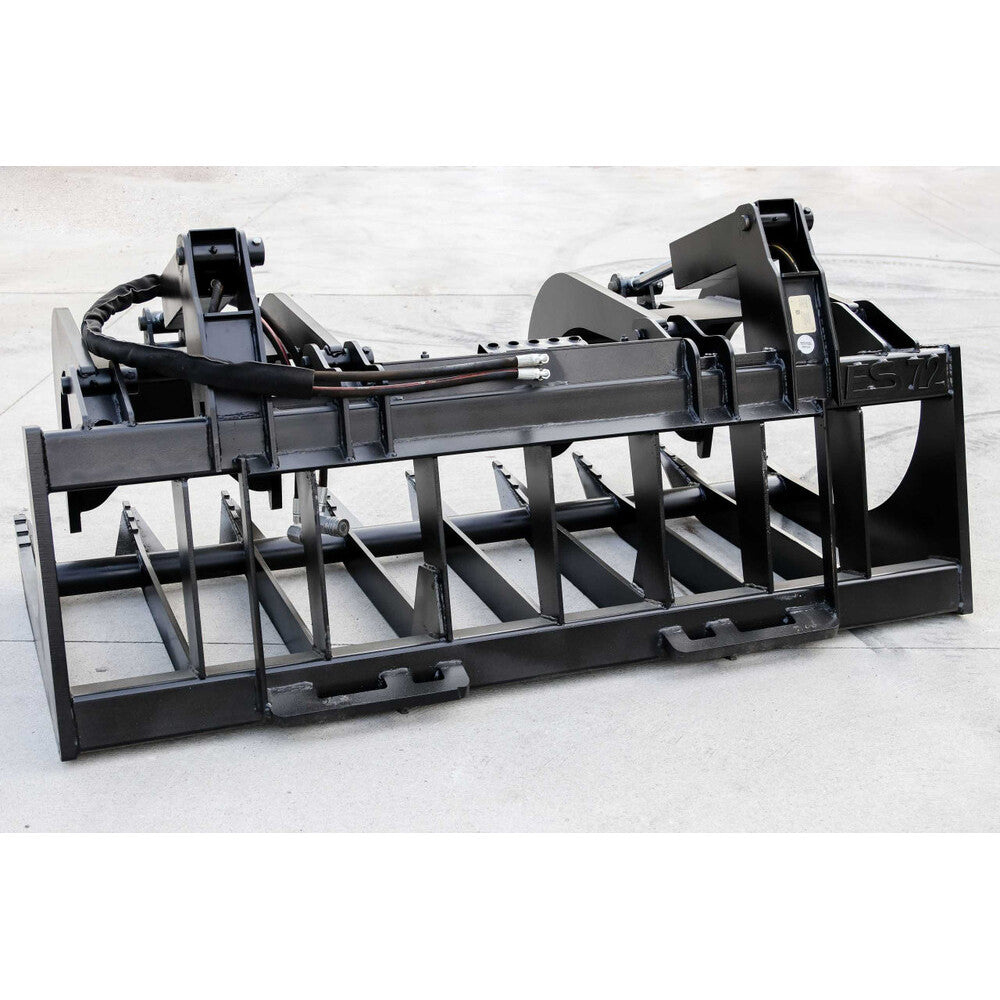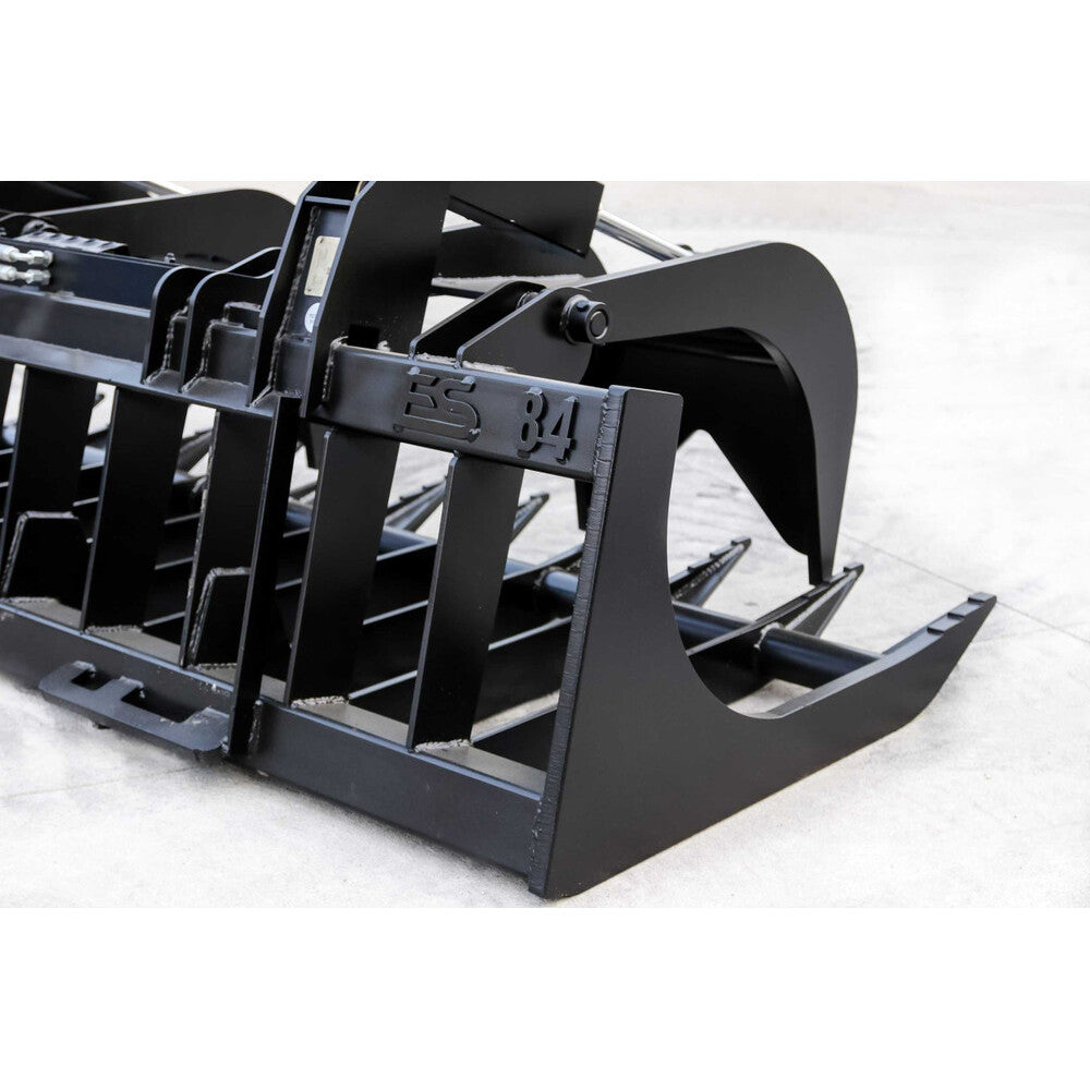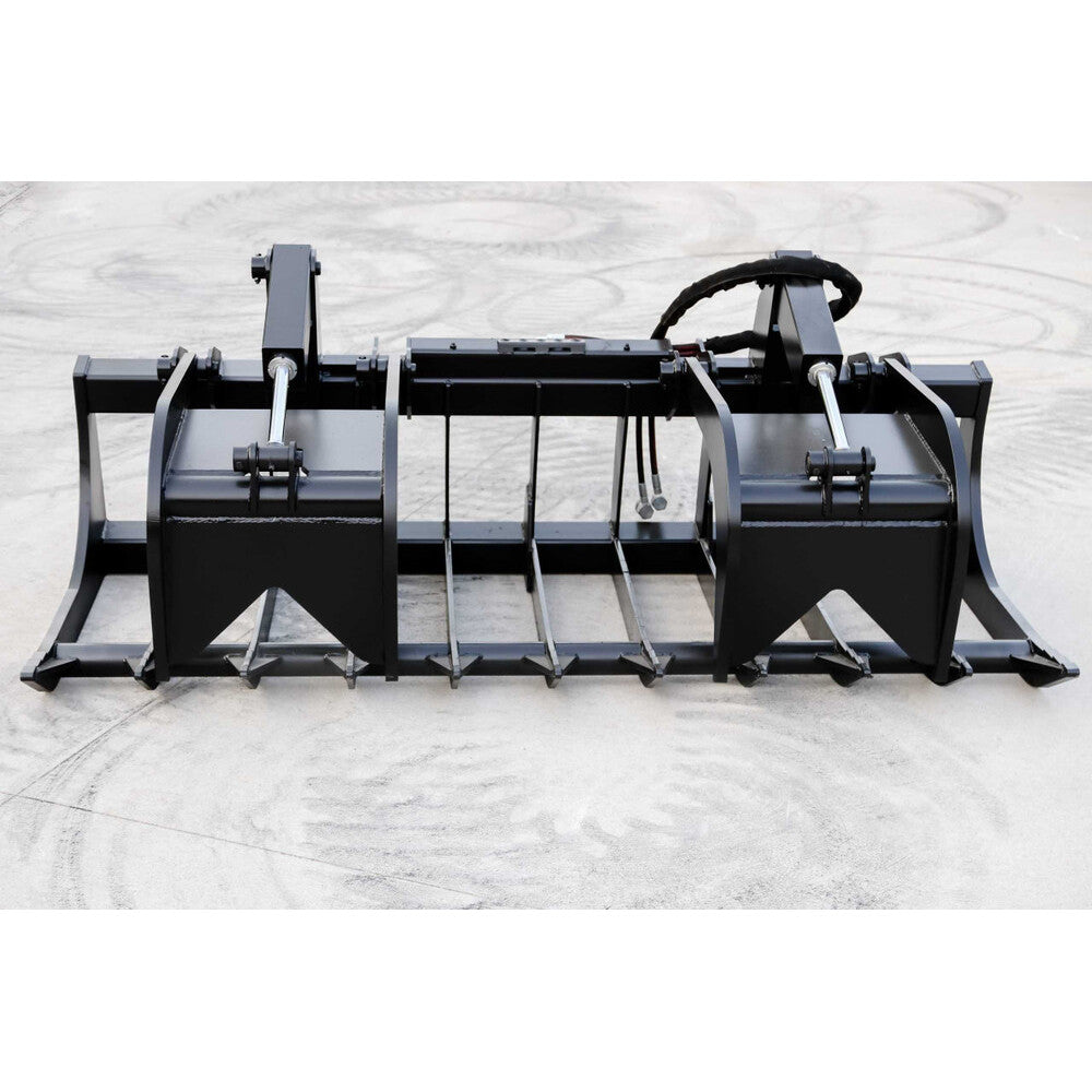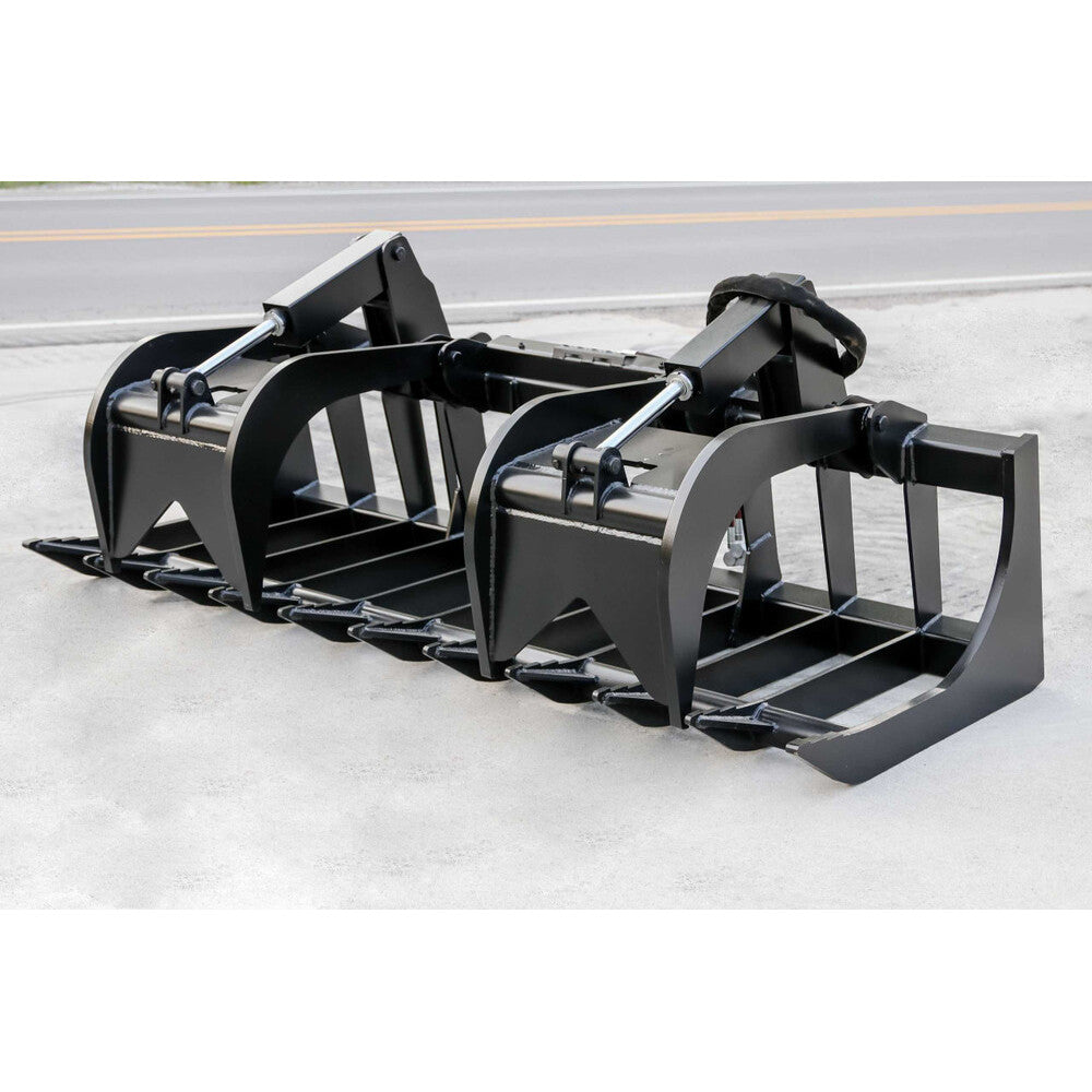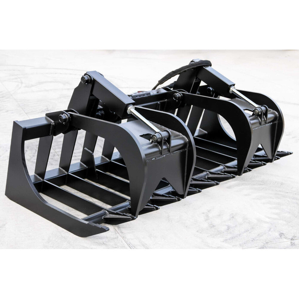 This heavy duty grapple is the ideal attachment for tackling your toughest jobs, including lifting and transporting heavy materials, such as brush, logs, stumps, roots, rocks, and more. This multi-purpose grapple is designed for effective and efficient land clearing, brush removal, and jobsite clean-up, effortlessly handling everything from large-scale landscaping projects to industrial-level material handling. Equipped with Parker hoses, 1/2" flat faced fittings and couplers that will hook up to almost any skid steer hydraulic system.