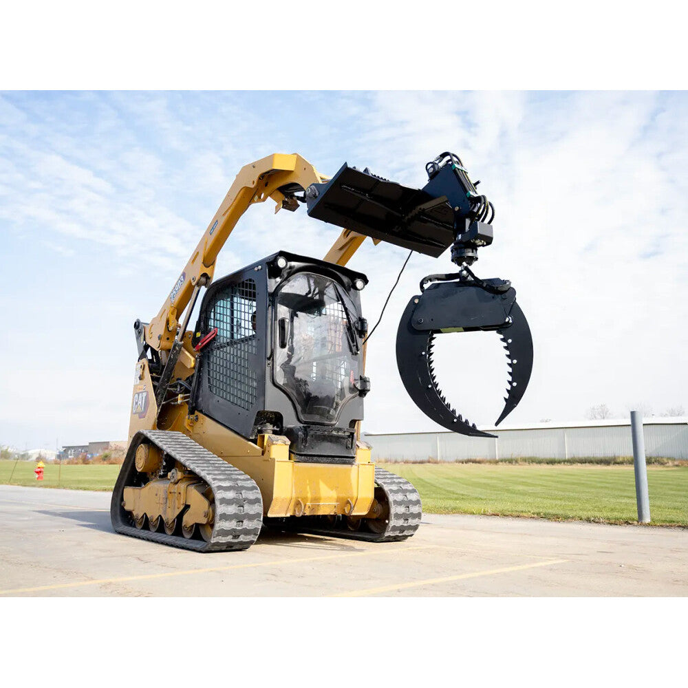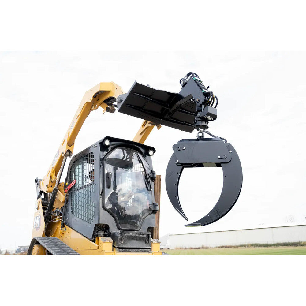 This hydraulic rotating log grapple is the ideal attachment for lifting and transporting heavy materials, such as logs, stumps, roots, and more. This multi-purpose grapple is designed for effective and efficient land clearing, tree work, and jobsite clean-up, effortlessly handling everything from large-scale landscaping projects to industrial-level material handling. Equipped with Parker hoses, 1/2" flat faced fittings and couplers that will hook up to almost any skid steer hydraulic system.