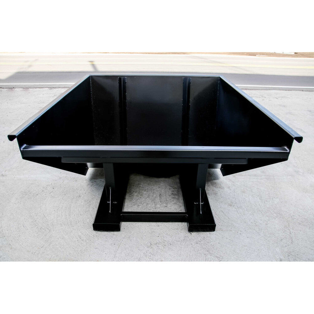 Our HD quick attach hopper is engineered to easily hook into the standard skid steer quick attach to quickly and efficiently empty the container. It's the perfect attachment for moving and dumping scrap, trash, debris, concrete, sand, dirt, stone, or any other bulk material (available in watertight as well).The 3" fork slots accommodate most forklifts and pallet forks for easy moving, loading and unloading.