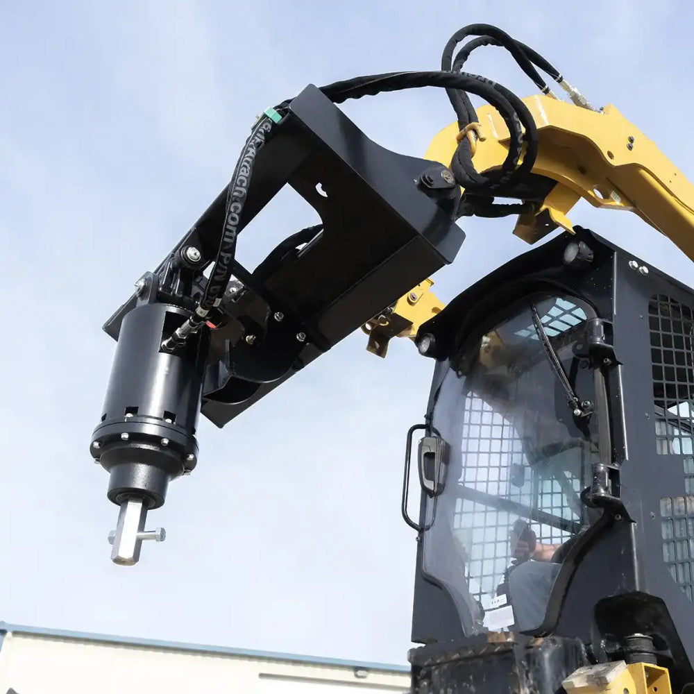 This high-performance auger features planetary drive and uses 2" hex bits. This product is built to operate efficiently with a hydraulic flow rate of 10 to 40 GPM, ensuring compatibility with a variety of machines. Capable of drilling holes up to48" in diameter, this auger is ideal for everything from landscaping to construction projects. Equipped with durable Parker hoses, fittings, and couplers, it easily connects to most skid steer hydraulic systems.