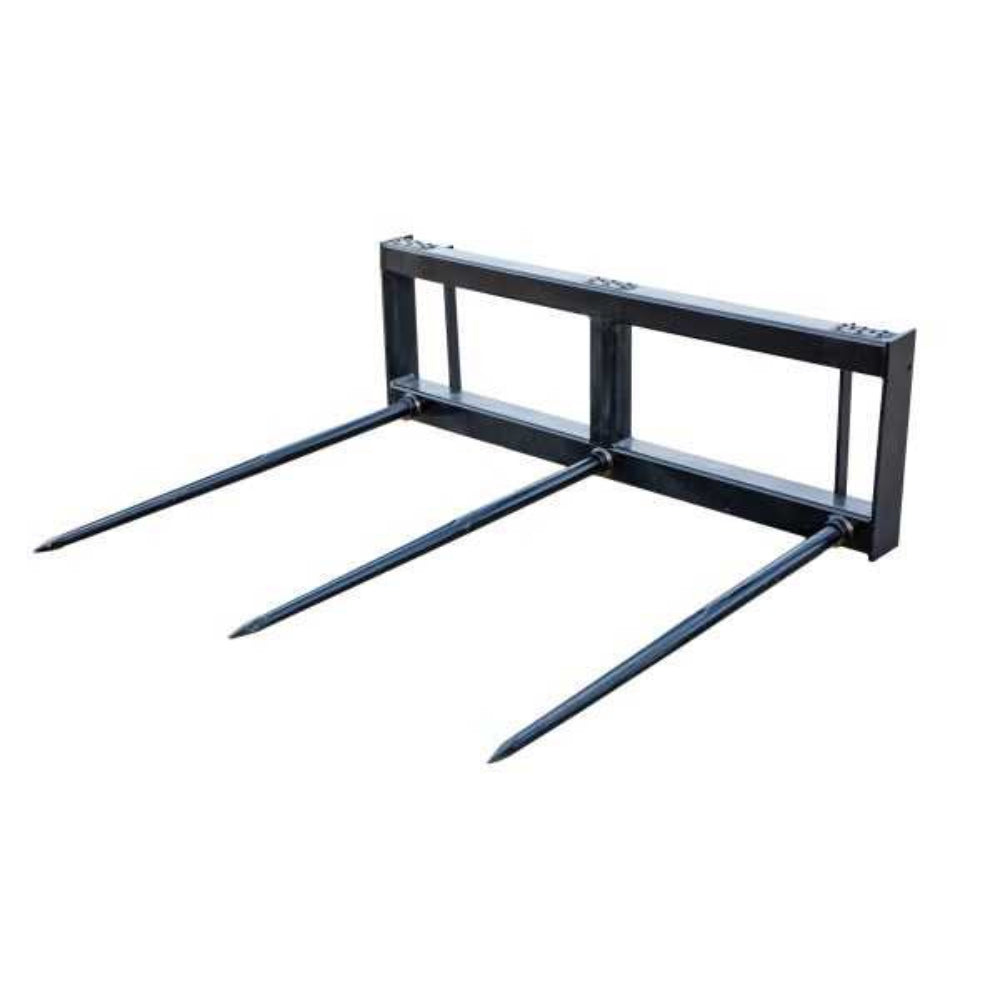 Our square bale spear is the ideal attachment for efficiently moving hay bales. Featuring a durable open-frame design, it maximizes lifting capacity without the added weight. Designed for quick and easy compatibility with the standard quick-attach system, this attachment allows you to lift and transport bales effortlessly in just seconds, making your job faster and more efficient.