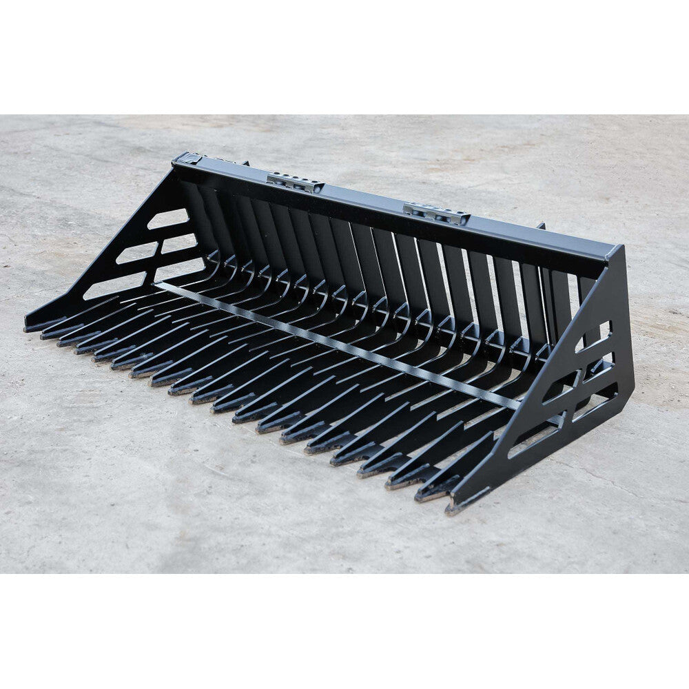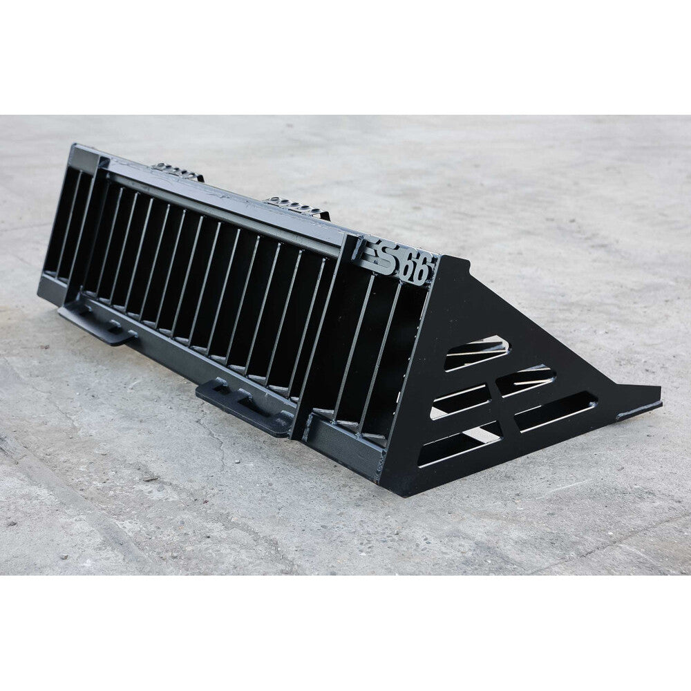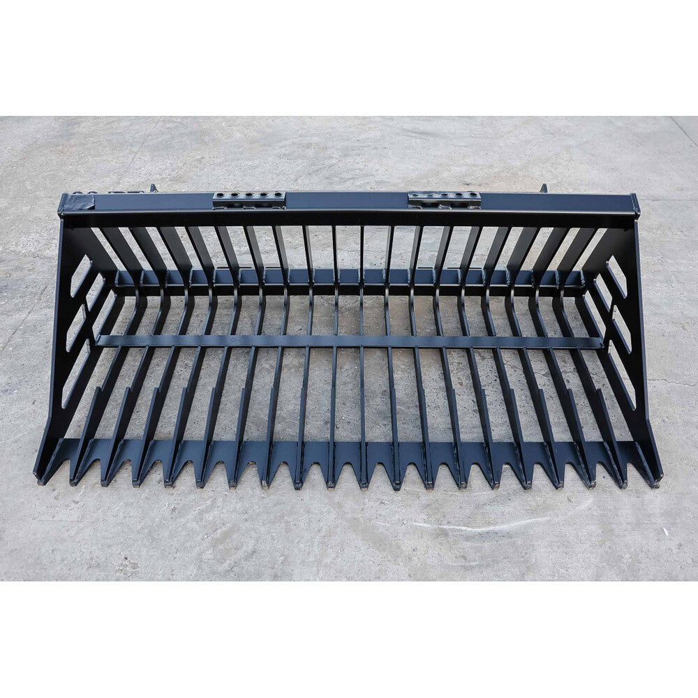 This 66" rock bucket is the ideal attachment for loading, scooping, and transporting heavy materials, such as rocks and debris, while also leaving the dirt in an area behind. This multi-purpose bucket is designed for effective and efficient land clearing and jobsite clean-up, effortlessly handling everything from large-scale landscaping projects to industrial-level material handling.