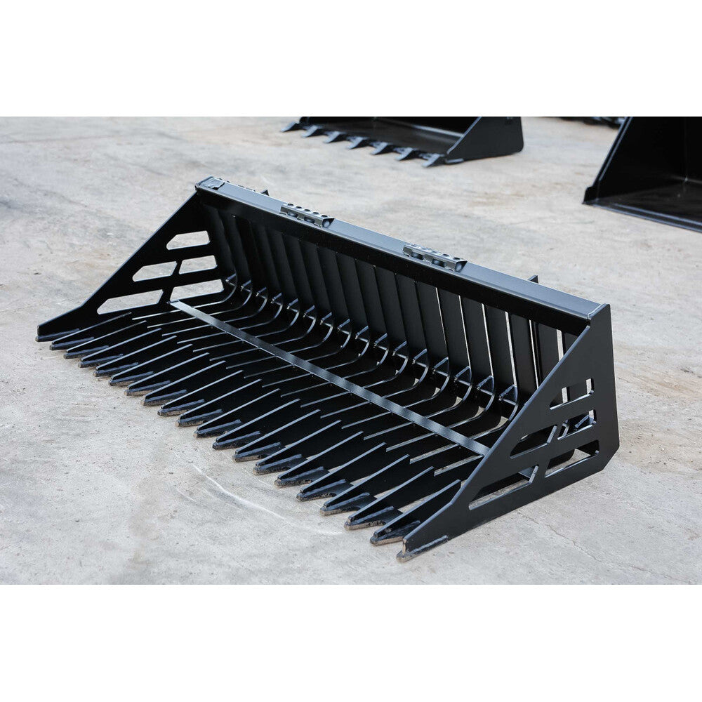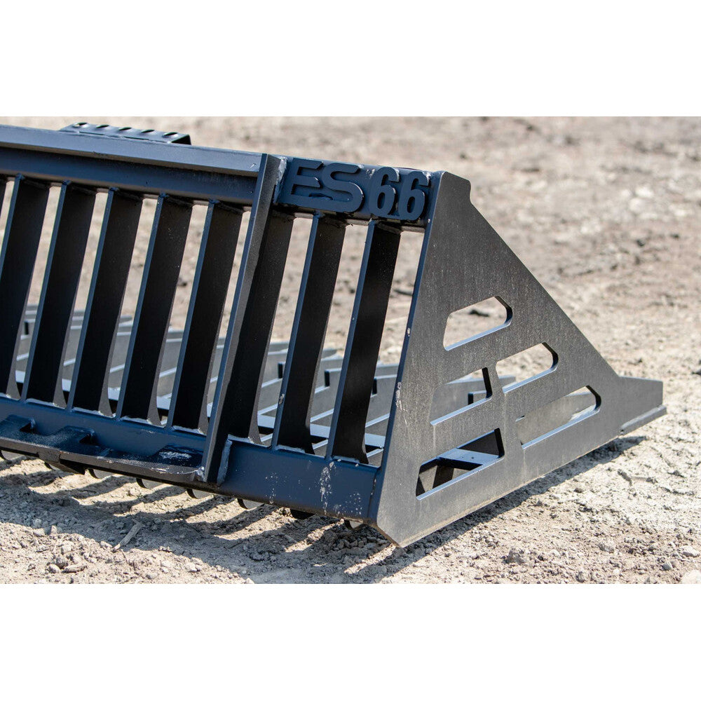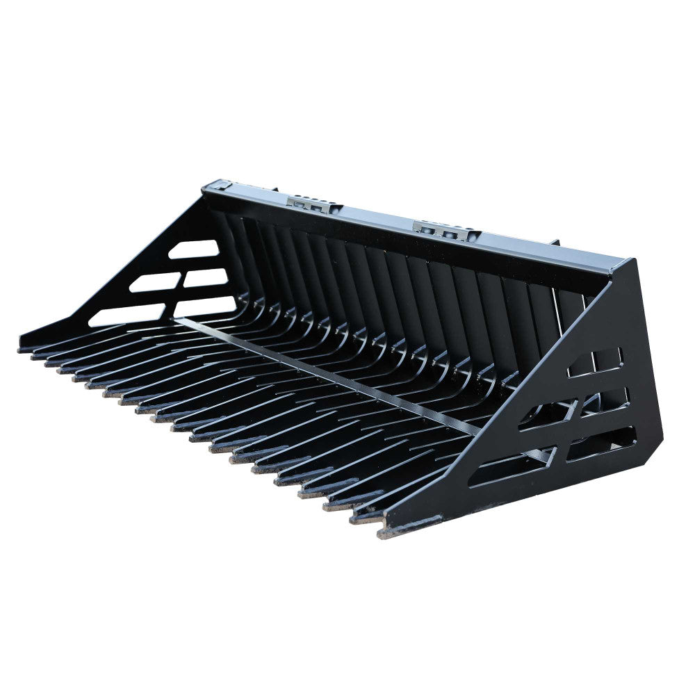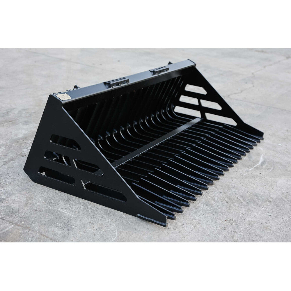 This 66" rock bucket is the ideal attachment for loading, scooping, and transporting heavy materials, such as rocks and debris, while also leaving the dirt in an area behind. This multi-purpose bucket is designed for effective and efficient land clearing and jobsite clean-up, effortlessly handling everything from large-scale landscaping projects to industrial-level material handling.