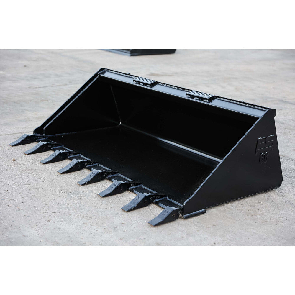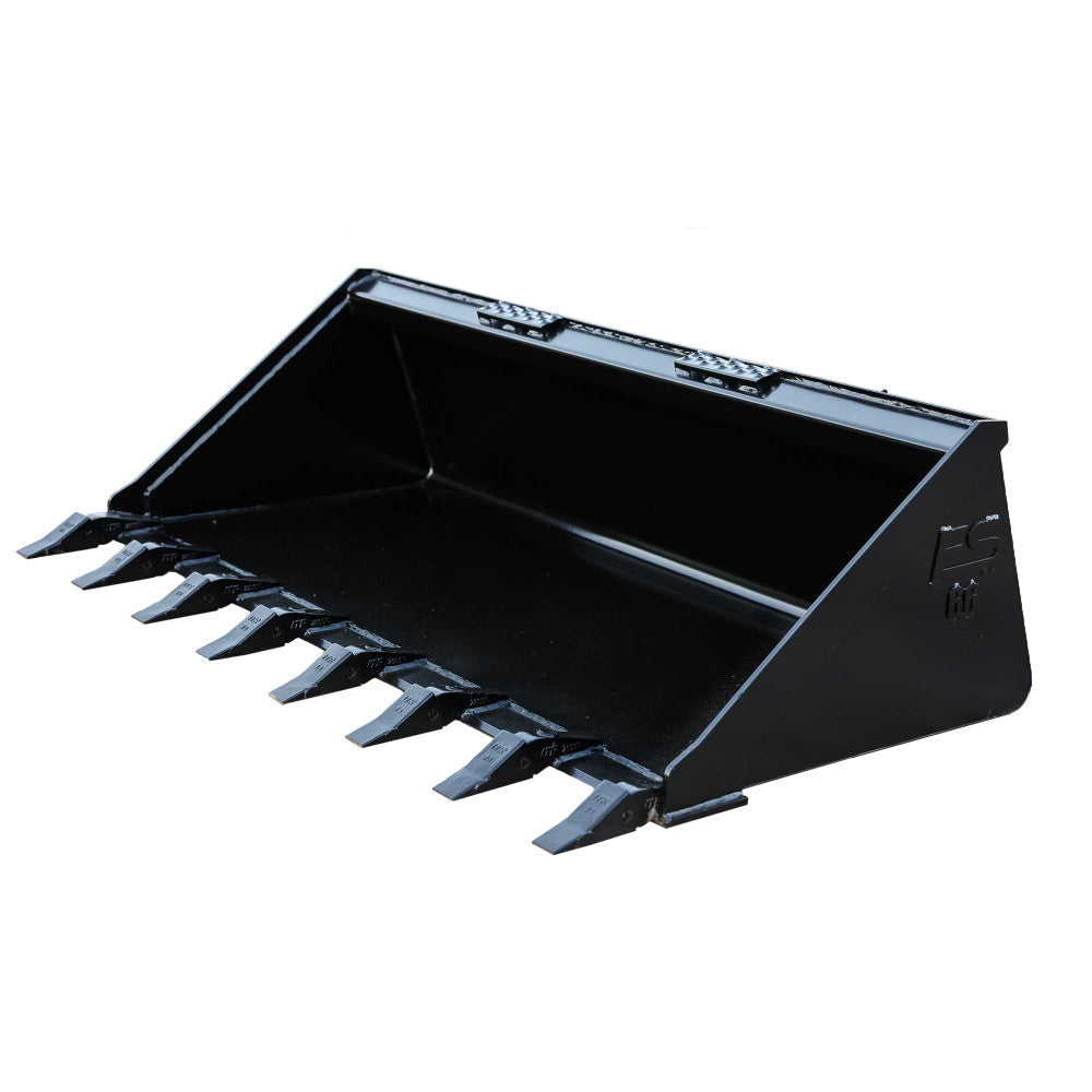 This versatile skid steer tooth bucket, with 7 pin-on replaceable teeth, is designed for efficient loading, scooping, and material handling. Its longer bottom provides enhanced visibility from the operator's seat, ensuring precision and ease of use during operation. Ideal for skid steers with 50 HP or below, this durable bucket is perfect for a wide variety of tasks.