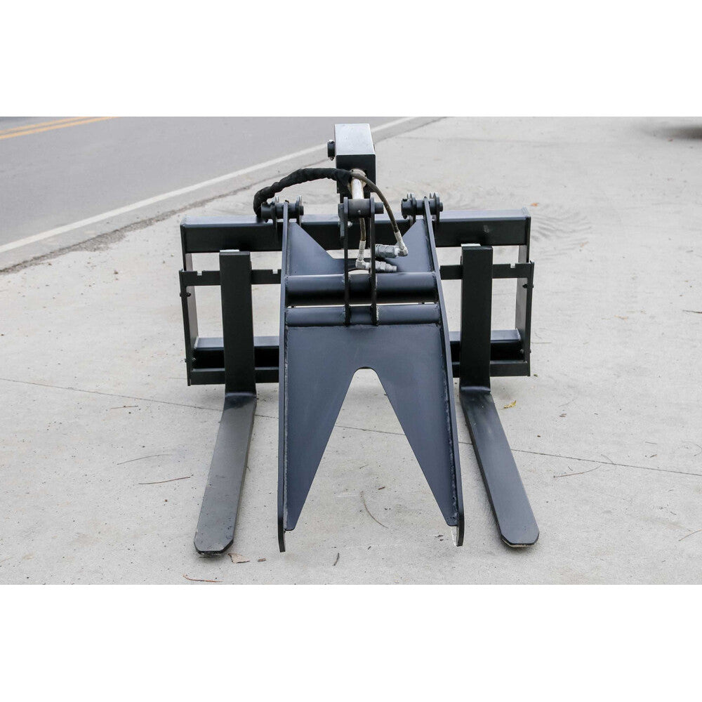 This pallet grapple is the perfect 2-in-1 attachment for tackling your toughest jobs, including lifting and transporting heavy materials. It is designed to make it easy to move heavy loads using your forks, while the grapple arm secures them for added stability . This multi-purpose grapple effortlessly handles everything from large-scale landscaping projects to industrial-level material handling. Available with 42" or 48" fork blades, and equipped with 1/2" flat face quick connect couplers.