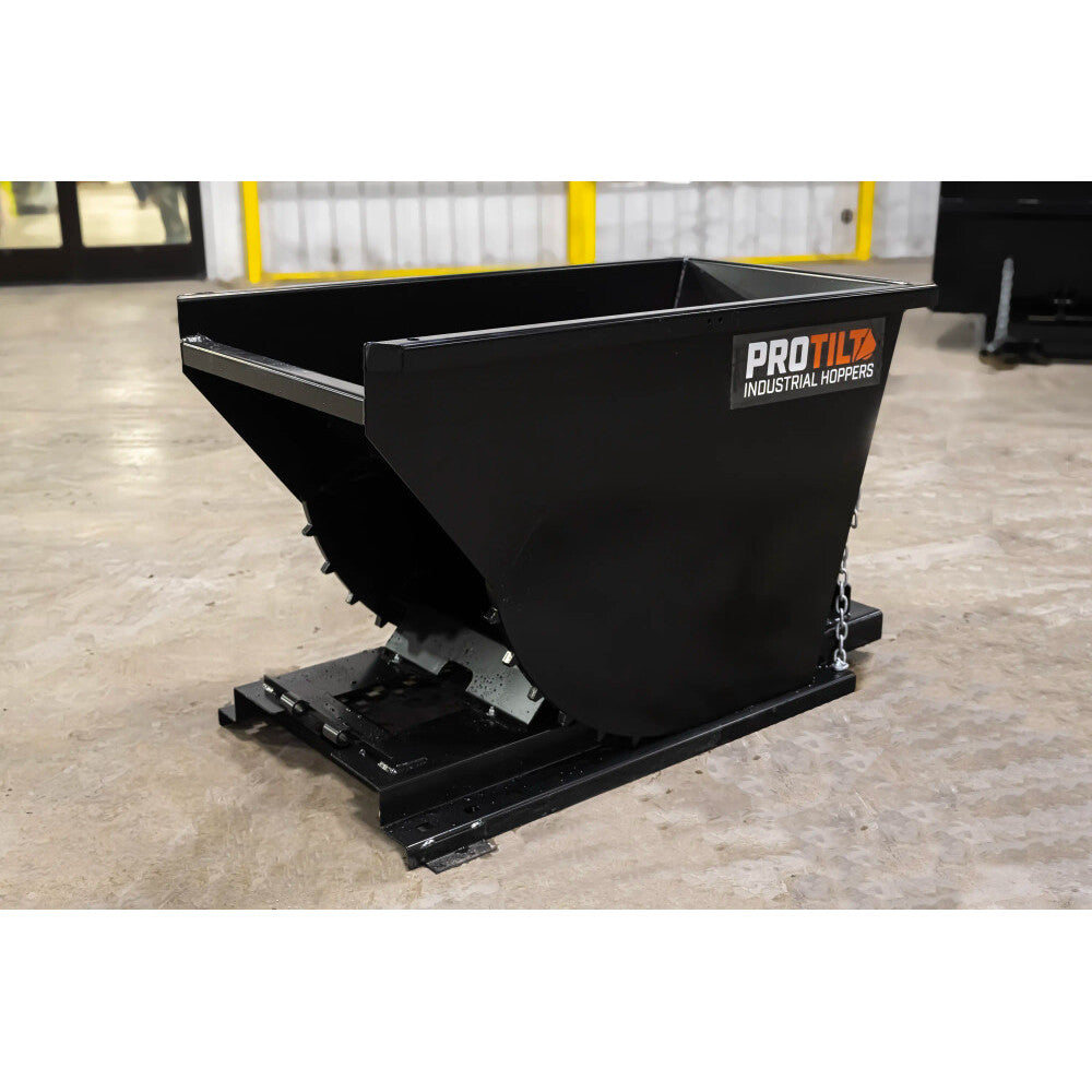 Built from all American steel, PROTILT Self-Dumping Hoppers are designed for handling scrap, waste, and bulk materials in demanding environments. Each hopper is reinforced with precision-welded joints and a durable powder-coated finish for long-lasting protection. These hoppers are designed with a self-dumping mechanism that automatically returns to the upright position after dumping, utilizing a forward-tipping action that ensures complete discharge of materials while maintaining operator safety. The self-dumping mechanism provides smooth, controlled unloading with the option of manual or bump-release operation. Ideal for factories, fabrication shops, and material yards where reliable material flow is critical. Every Hopper comes standard with a drain plug for easy drainage.