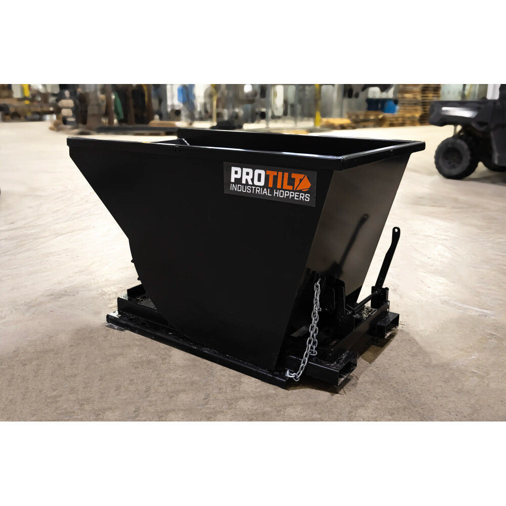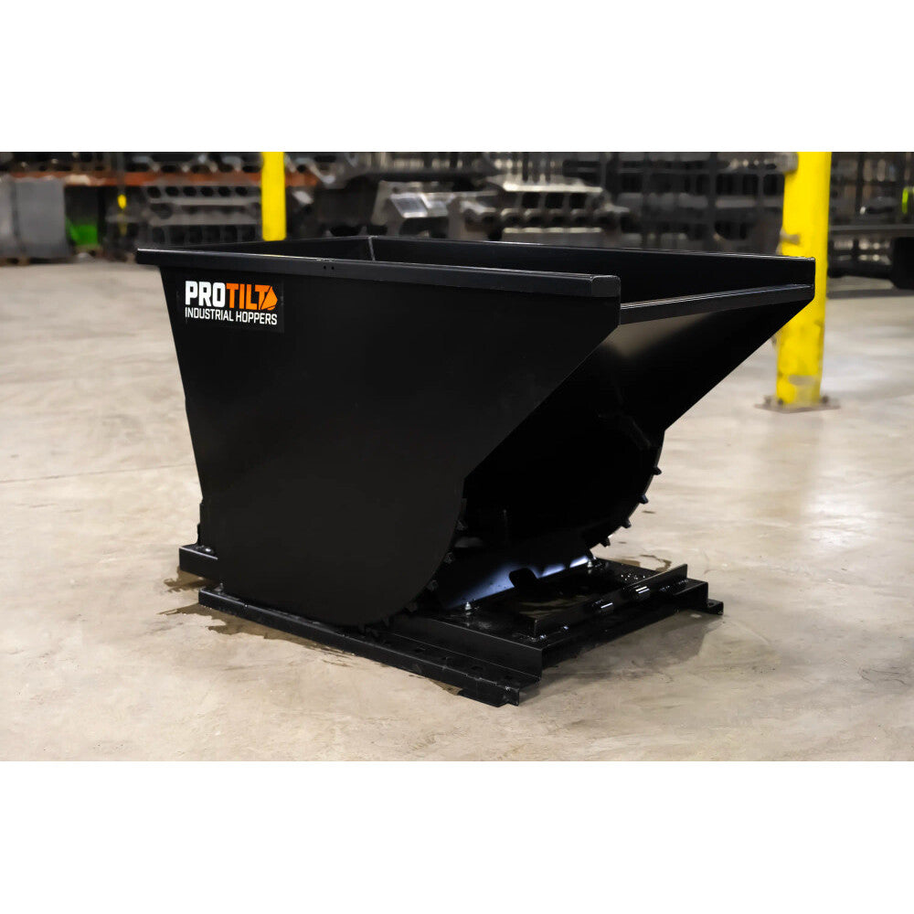 Built from all American steel, PROTILT Self-Dumping Hoppers are designed for handling scrap, waste, and bulk materials in demanding environments. Each hopper is reinforced with precision-welded joints and a durable powder-coated finish for long-lasting protection. These hoppers are designed with a self-dumping mechanism that automatically returns to the upright position after dumping, utilizing a forward-tipping action that ensures complete discharge of materials while maintaining operator safety. The self-dumping mechanism provides smooth, controlled unloading with the option of manual or bump-release operation. Ideal for factories, fabrication shops, and material yards where reliable material flow is critical. Every Hopper comes standard with a drain plug for easy drainage.
