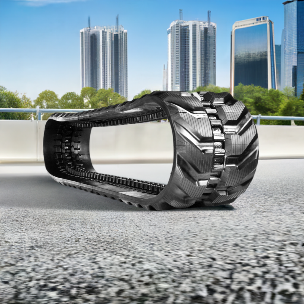 Directional block pattern rubber tracks are engineered for optimal performance on hard and abrasive surfaces. Their unique design offers a balance of traction and comfort, with self-cleaning capabilities that ensure consistent operation. Ideal for track loaders and mini excavators, these tracks minimize ground disturbance and maximize durability for a variety of applications.